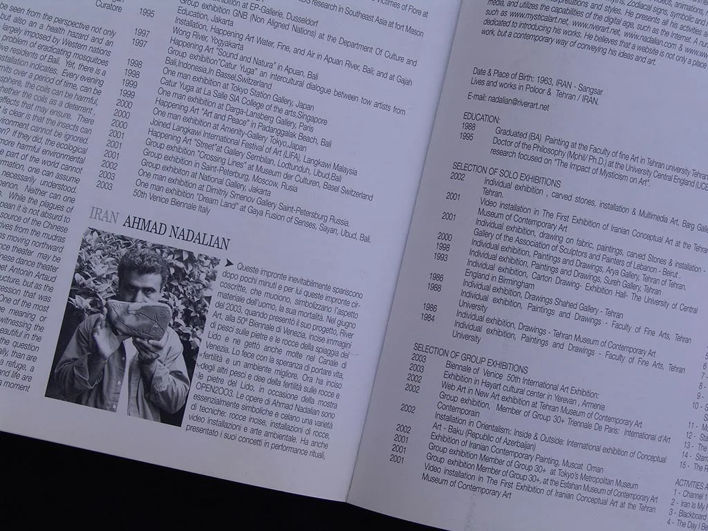 احمد نادعلیان سال 1382 در جزیره لیدو نزدیک ونیز در ایتالیا همزمان با نمایشگاه اوپن 2003