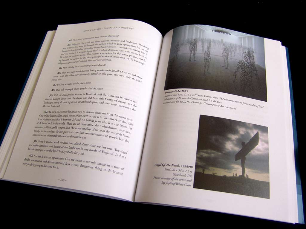 در کتاب اخیر “گفتگو در گوناگونی”  موضوع مصاحبه با کریستو و ژان کلود بسته بندی ها آنها در محیط و بر کار اخیرشان در پارک مرکزی تاکید شده است.  گروملی در این کتاب مجموعه آثار جدیدش را در صحرای استرالیا و شمال انگلستان معرفی مینماید.