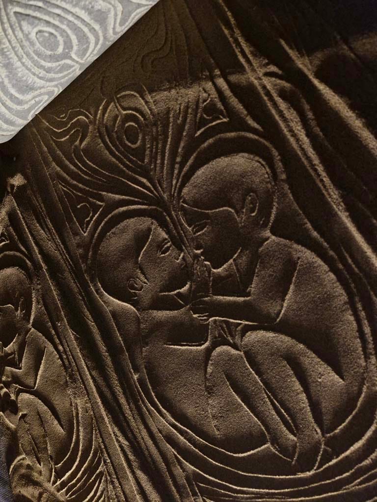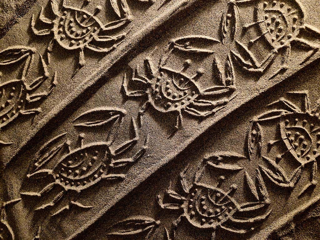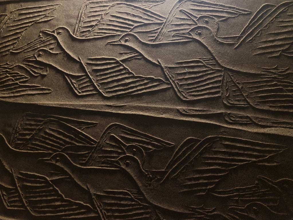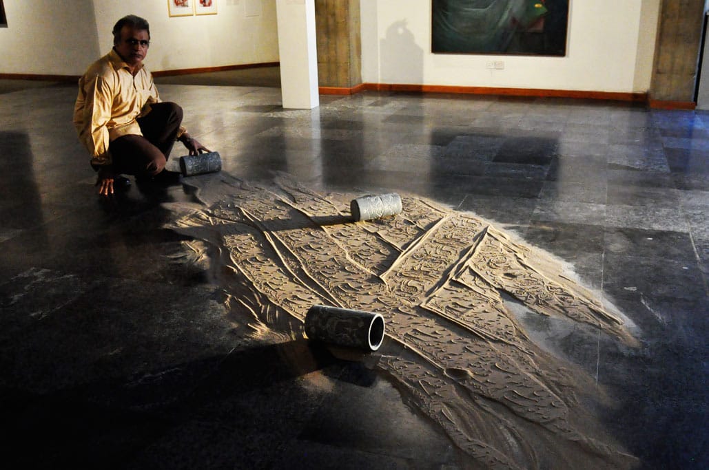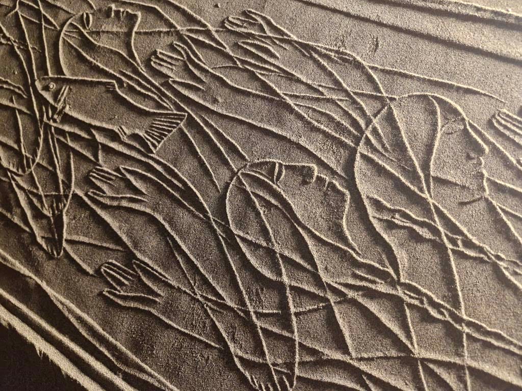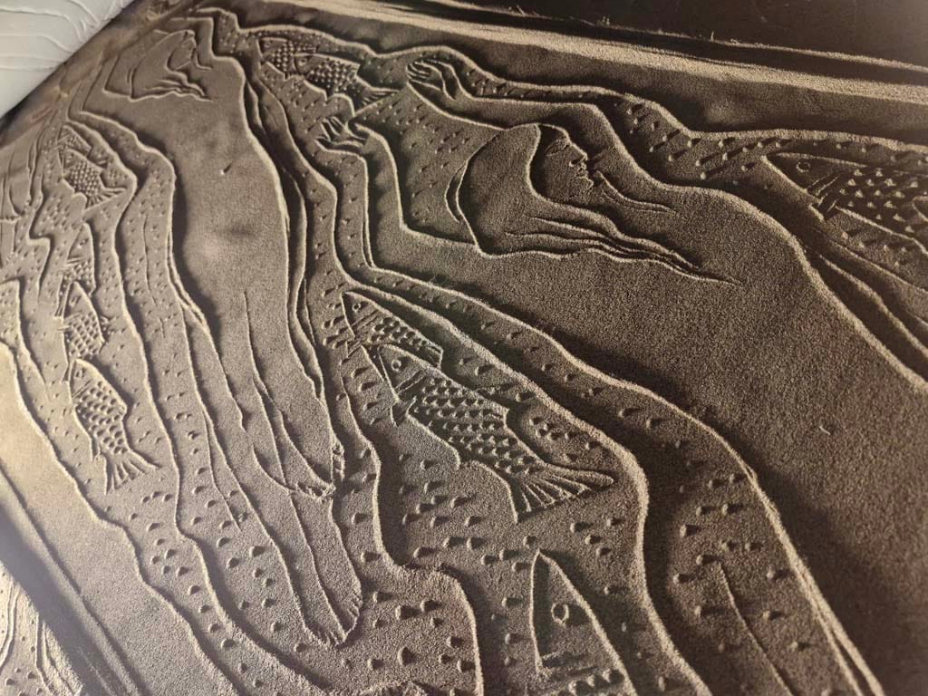 ساده ترین نوع چیدمان ریختن کمی ماسه بر روی یم میز کوچک است و یک نور مایل در شرایطی بوجود می آید تا بار حرکت دادن مهر بر روی ماسه ها نقش ها همانند نقوش در هنگام طلوع و یا غروب آفتاب در ساحل دریا یا کویر دیده می شوند.