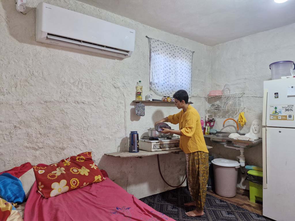 در حال حاضر در طبقه پایین فقط ما به صورت یک هاستل میزبان گردشگران و پژوهشگران و هنرمندان خانم هستیم. چون راهنمای موزه ما خانم هستند و از آشپزخانه ، حمام و سرویس آن به صورت مشترک استفاده می کند. تا یک ماه دیگر سویت طبقه دوم آماده می شود و ما می توانیم پذیرای خانواده و یا آقایان باشیم. طبقه بالا در حال حاضر یک تخت دو نفره دارد ولی حمام و آشپزخانه آن آماده نشده است.