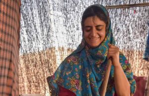 دختر خندان در حال انجام نقاشی در محیط عمومی شهر هرمز با حمایت موزه دکتر نادعلیان