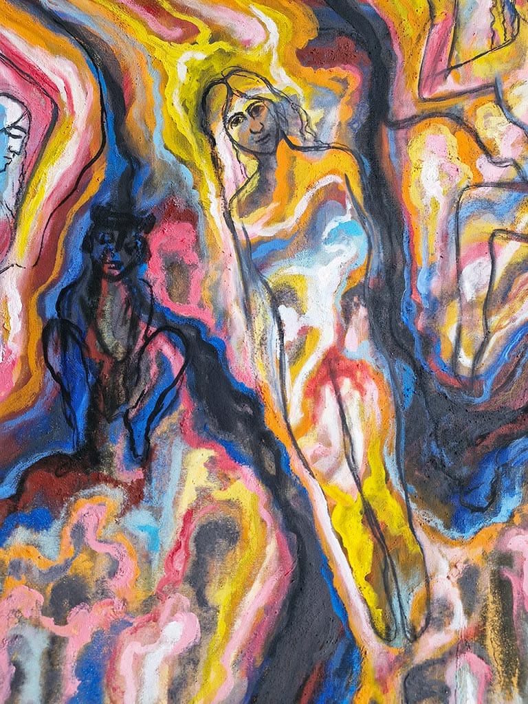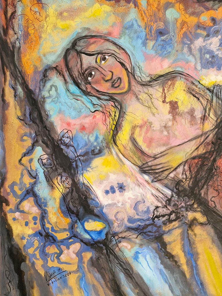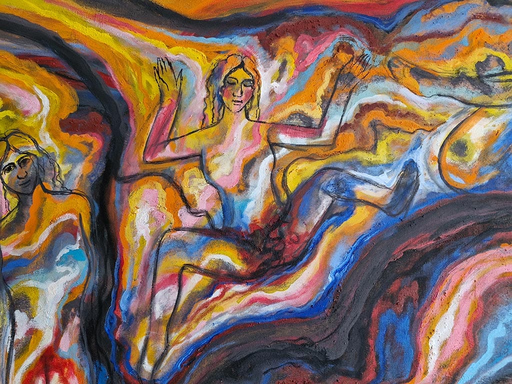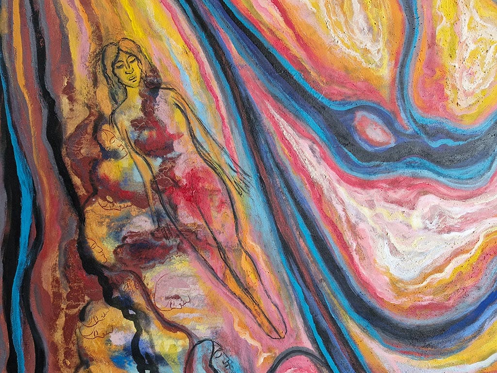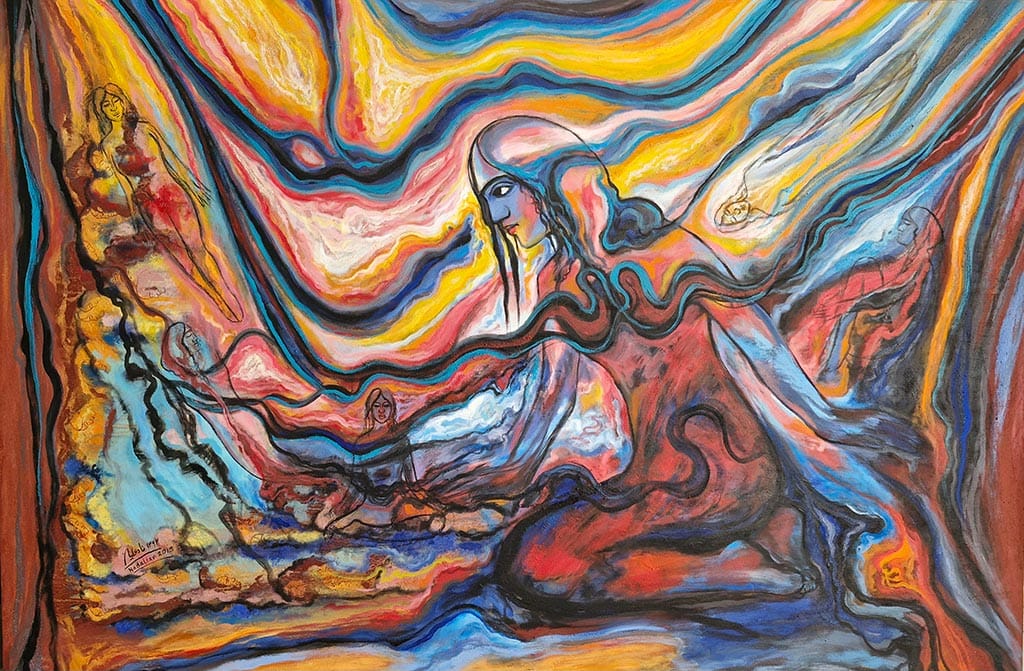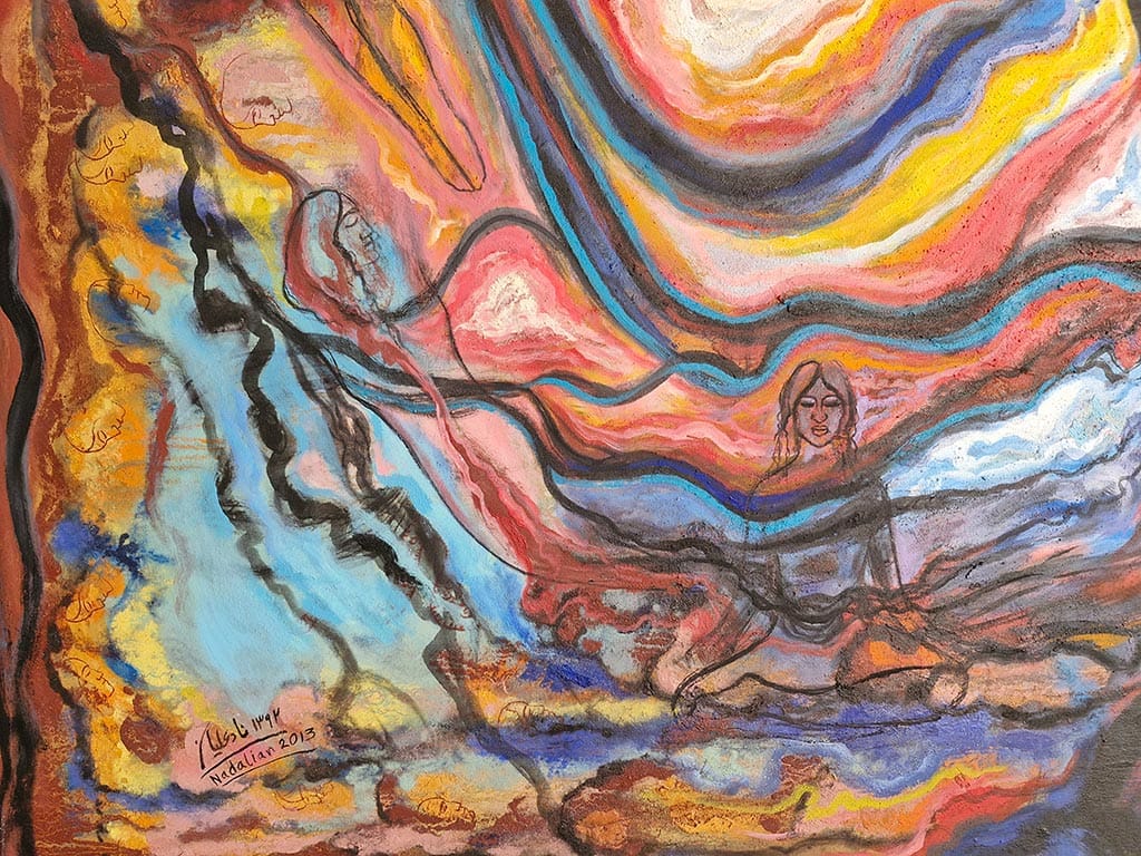 زندگی در طبیعت جزیره هرمز موجب شده که احمد نادعلیان به عنوان یک نقاش الهه های پنهان زیادی را در کوه های رنگین هرمز ببیند و آنها را بر روی بوم نقاشی کند. آثار هنری نادعلیان اغلب به طبیعت وابسته هستند. علاوه بر الهه آب او بر اندیشه زمین به عنوان یک زن و مادر توجه دارد. در فضای سحر آمیز هرمز همواه نقاشی و عکاسی کرده است و سعی می کند آنها را به دیگران نشان دهد.
