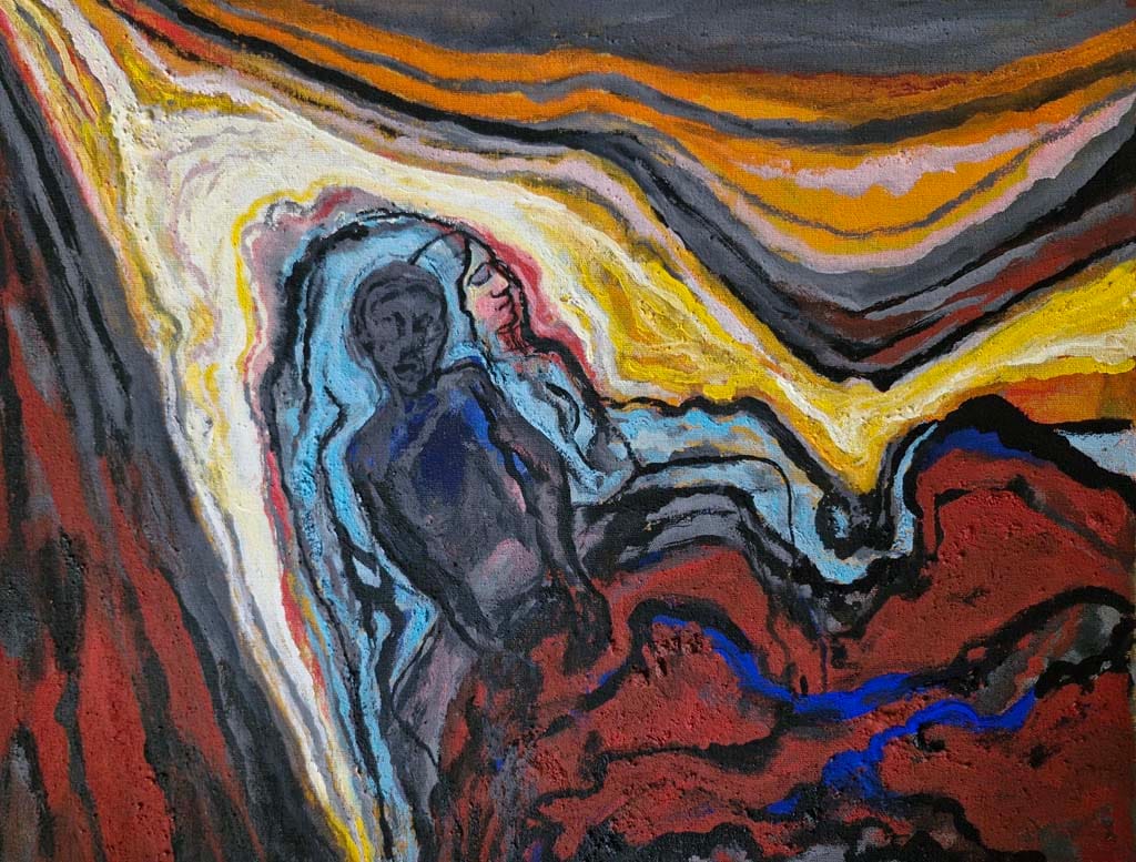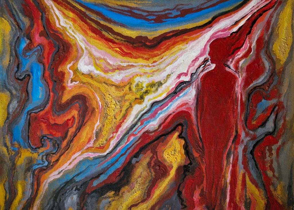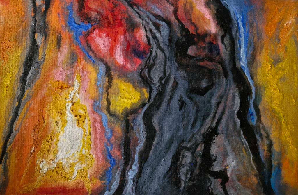 مادر زمین زخم دیده: نقاشی های احمد نادعلیان با پودر سنگ، خاک و پودرهای رنگی
